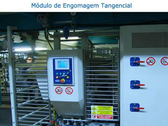 O Sistema Engomagem Tangencial é uma tecnologia que aplica uma cobertura de goma entorno dos fios (coroa).