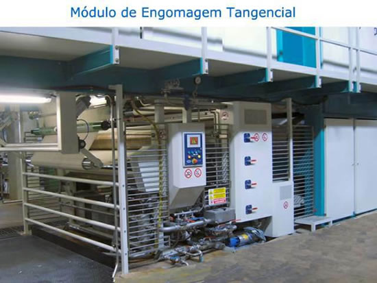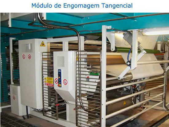 O Sistema Engomagem Tangencial é uma tecnologia que aplica uma cobertura de goma entorno dos fios (coroa).